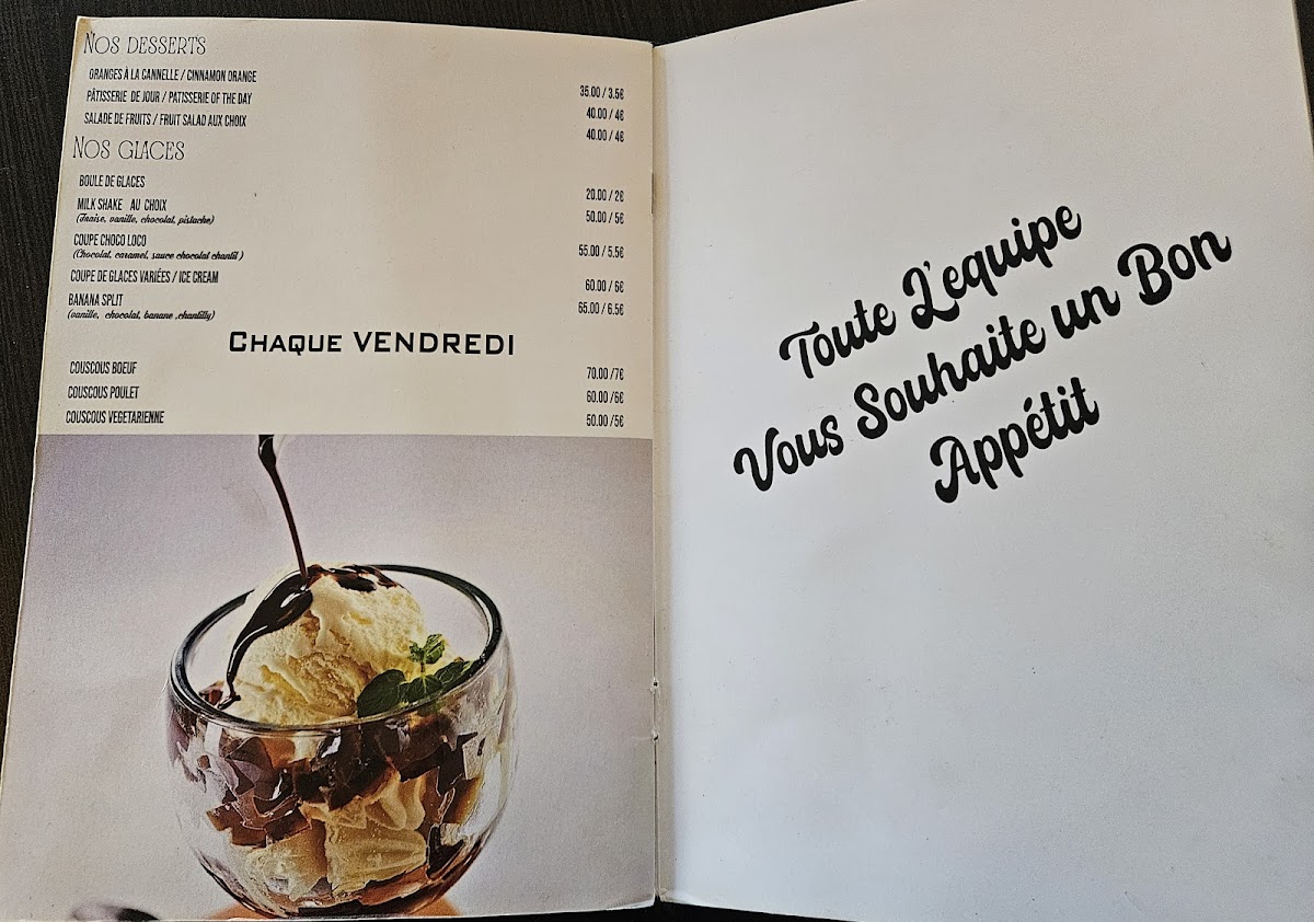 Beverages: Their Moroccan mint tea is a soothing end to any meal, complemented by delicious natural juices.